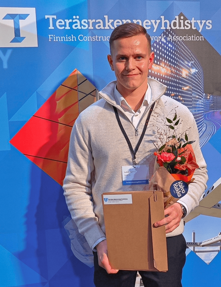 Lukas’s thesis received a Recognition Award at Teräsrakennepäivä, the annual event organized by the Finnish Constructional Steelwork Association. For him, the recognition confirmed the relevance of the topic. “It showed that automation in structural engineering is an important theme and that improving everyday workflows matters,” he says.